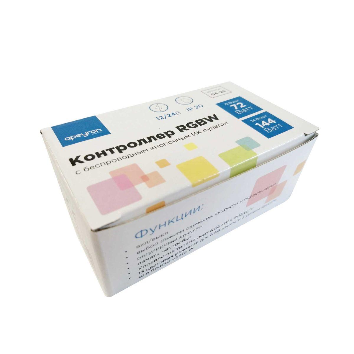 Характеристики Контроллер RGBW Apeyron с пультом 12/24V 04-29