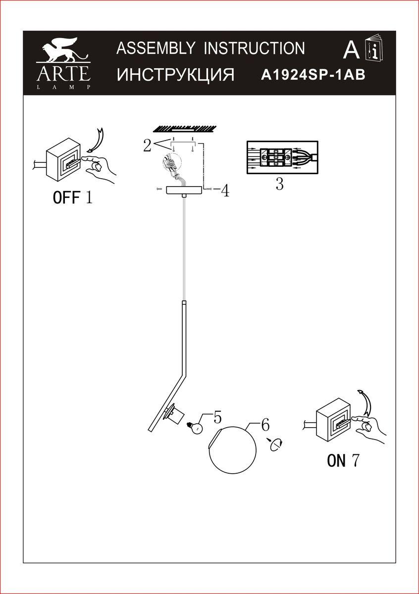Характеристики Светильник подвесной Arte Lamp A1924SP-1AB
