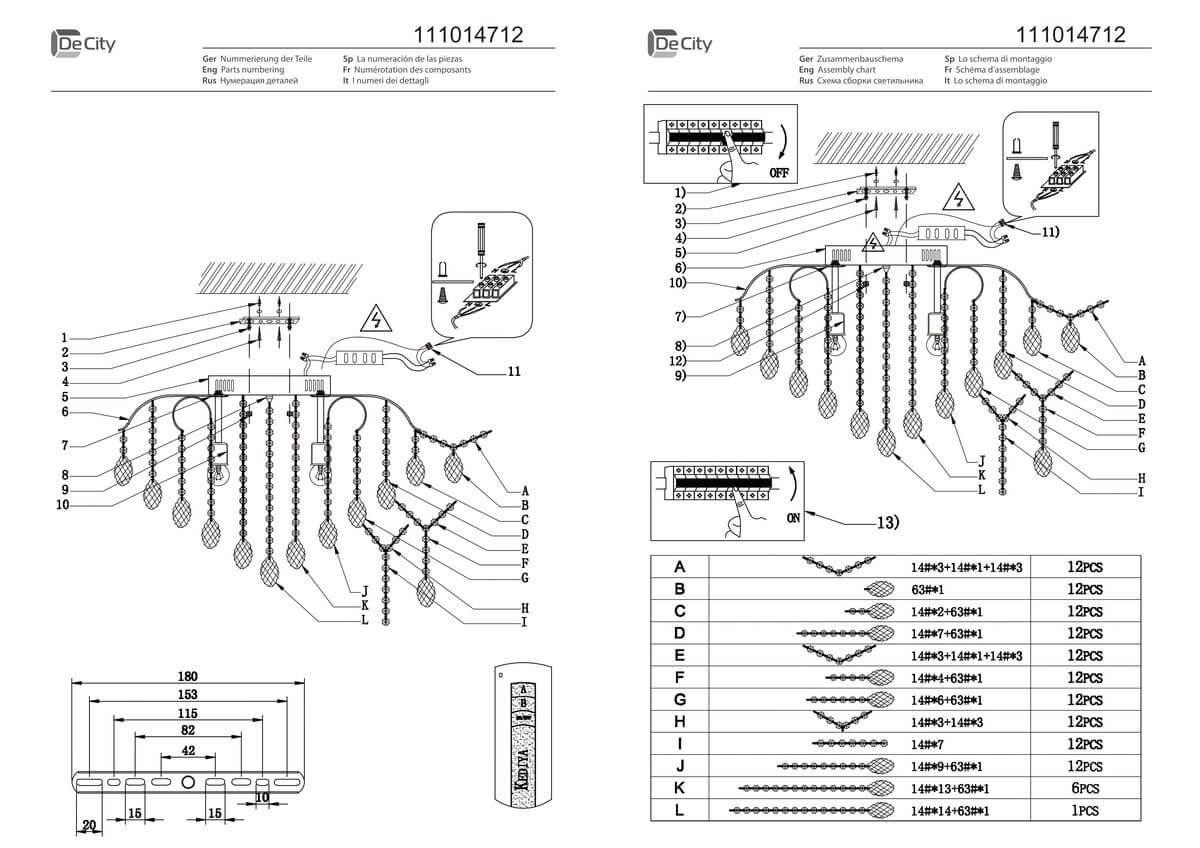 Характеристики Люстра потолочная хрустальная De Markt 111014712