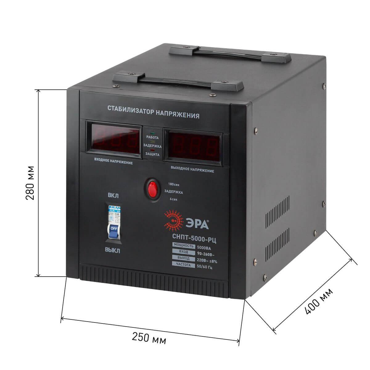 Характеристики Стабилизатор напряжения ЭРА СНПТ-5000-РЦ Б0035297