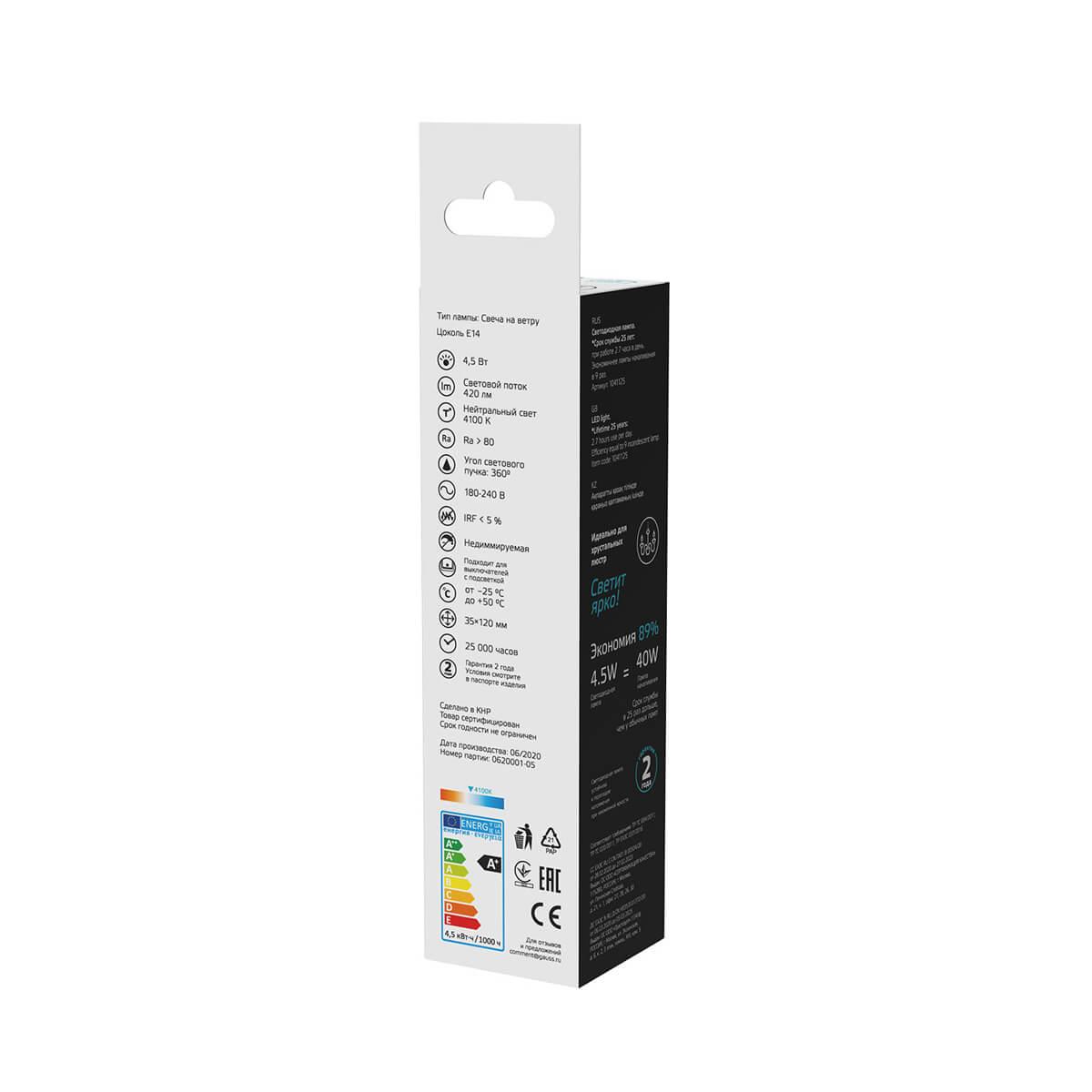 Характеристики Лампа филаментная Gauss 1041125