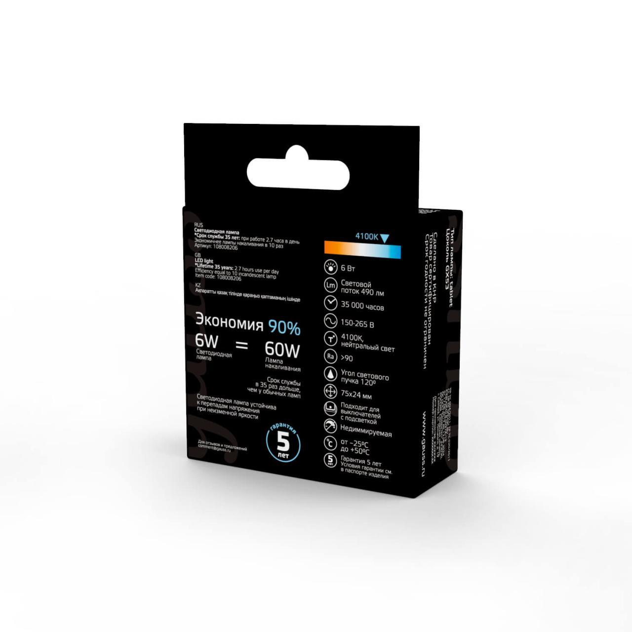 Характеристики Лампа Gauss 108008206