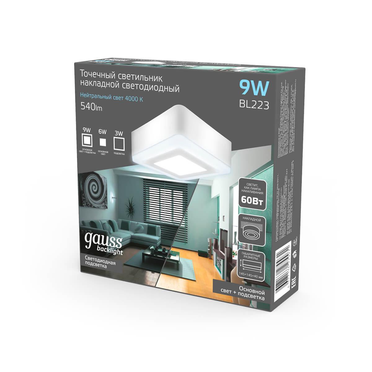 Характеристики Светильник накладный светодиодный Gauss BL223