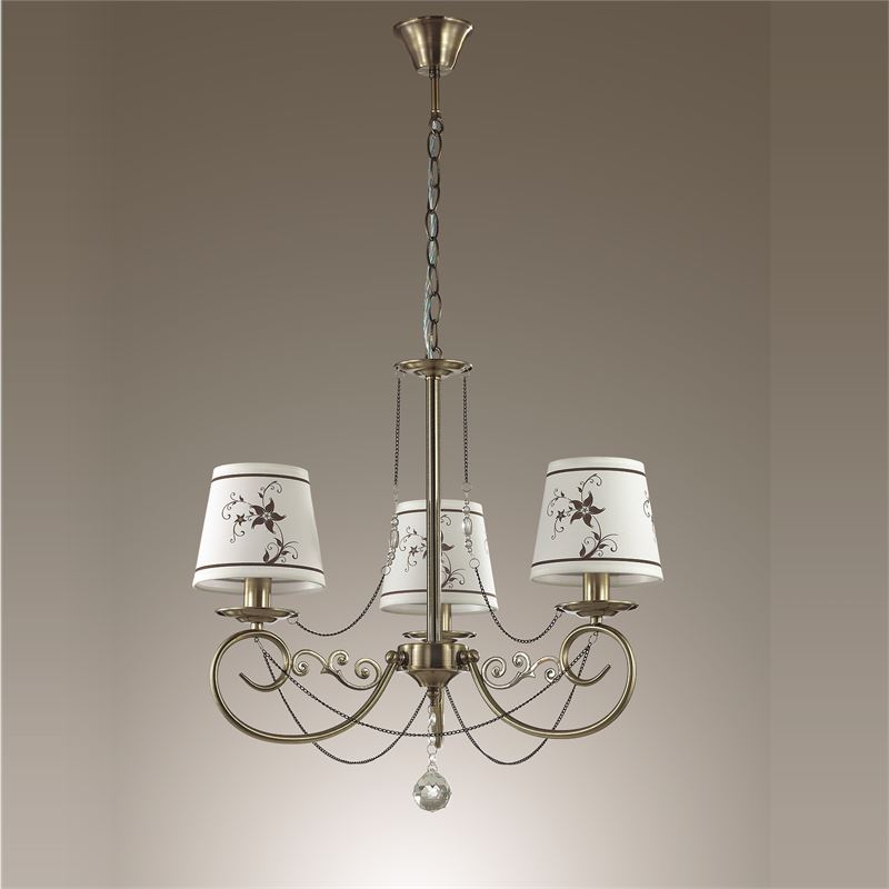 Прекрасная подвесная люстра 3405/3 из линейки TIERRI от известного итальянского производителя Lumion будет элегантным акцентом для гостиной, для спальни или для прихожей. Данная модель в высоту 910 мм, а диаметр 560 мм количество рожков 3 штуки, благодаря этому светильник превосходно подойдет для комнаты до 16.5 кв.м. Общая мощность ламп может быть до 120 вт, используется патрон E14.