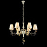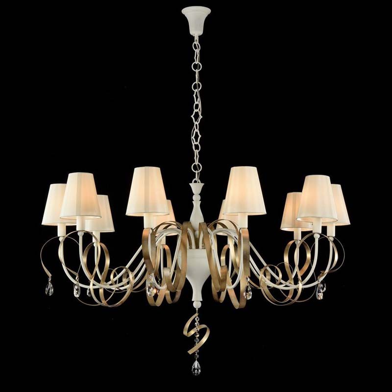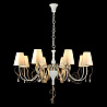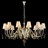 Данную люстру хорошо использовать в комнате,выдержанном в стиле классика. Арматура из металла, цвет белый и бронзовый, подвески прозрачные, плафоны белые из текстиля. Люстра обладает степенью защиты IP20.