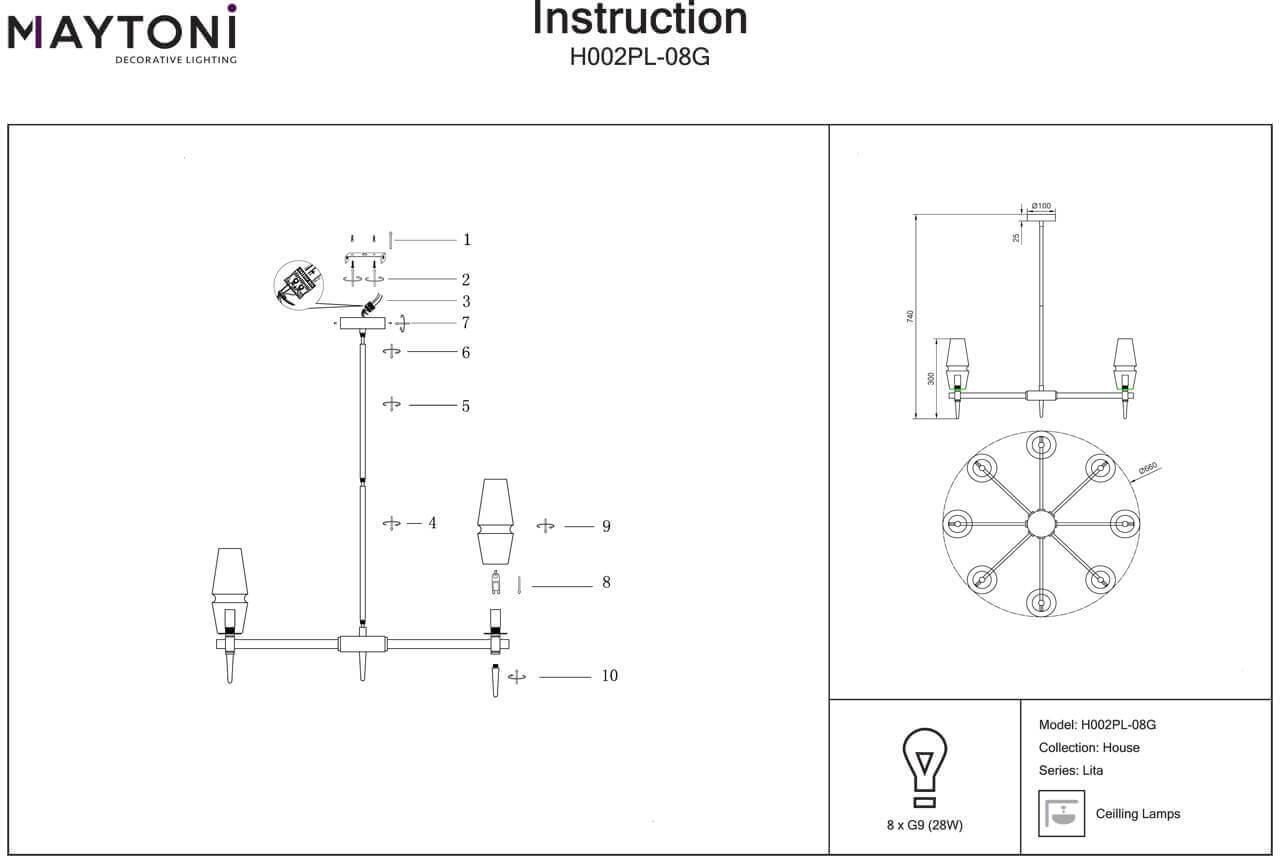 Характеристики Люстра на штанге галогеновая Maytoni H002PL-08G