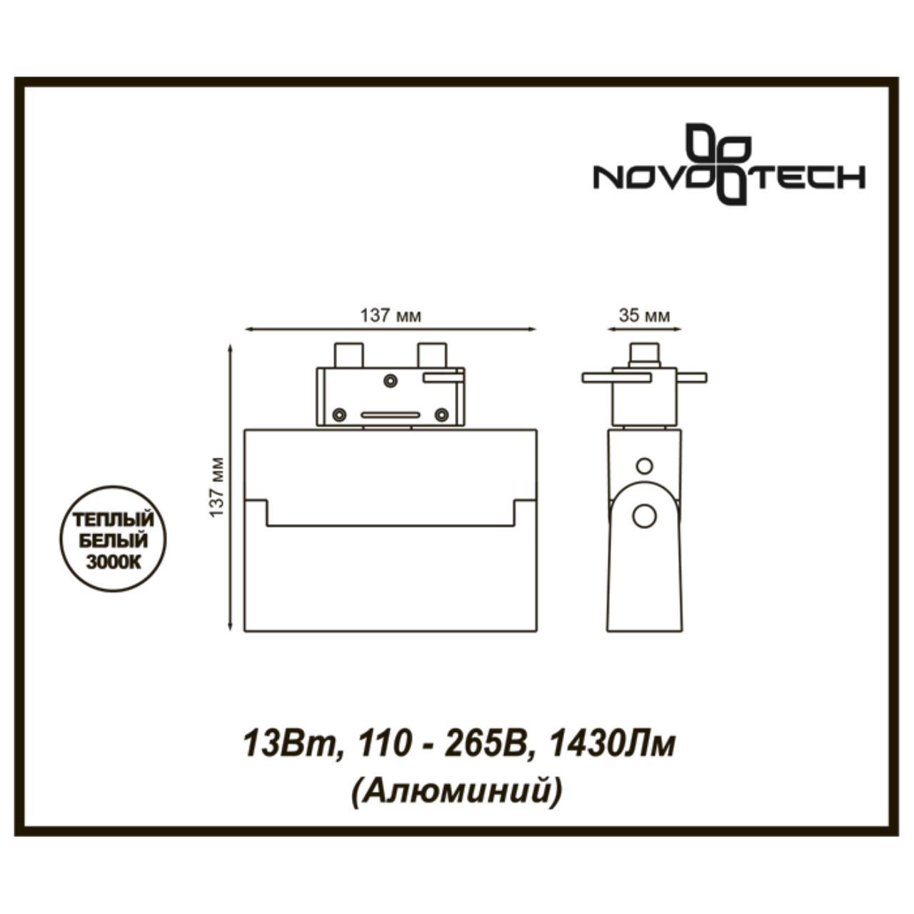 Характеристики Трековый светодиодный светильник Novotech Eos 357843