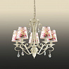 Люстру оптимально подвесить в комнате,выполненном в стилистике прованс. Арматура из металла, цвет бежевый, подвески прозрачные, плафоны белые и розовые из текстиля. Светильник имеет степень защиты от воды IP20.
