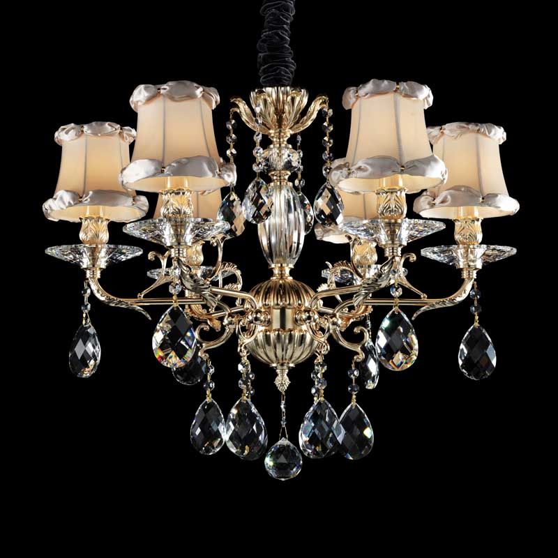 Данный осветительный прибор наилучшим образом установить в помещении в стиле классика. Каркас из металла и стекла, цвет золотой, подвески прозрачные, плафоны белые из текстиля. Светильник имеет защиту от воды IP20.