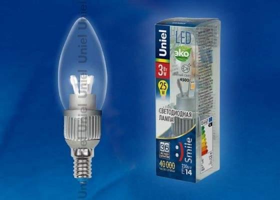 Лампа Uniel Led-C37P-3W/NW/E14/CL ALS01SL