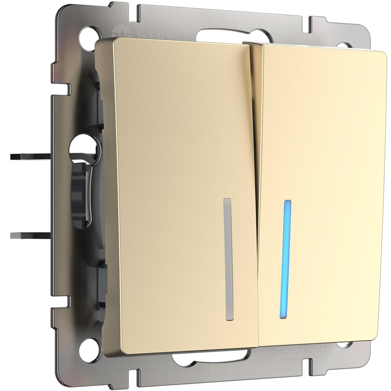 Выключатель двухклавишный с подсветкой Werkel шампань W1120111 4690389157097