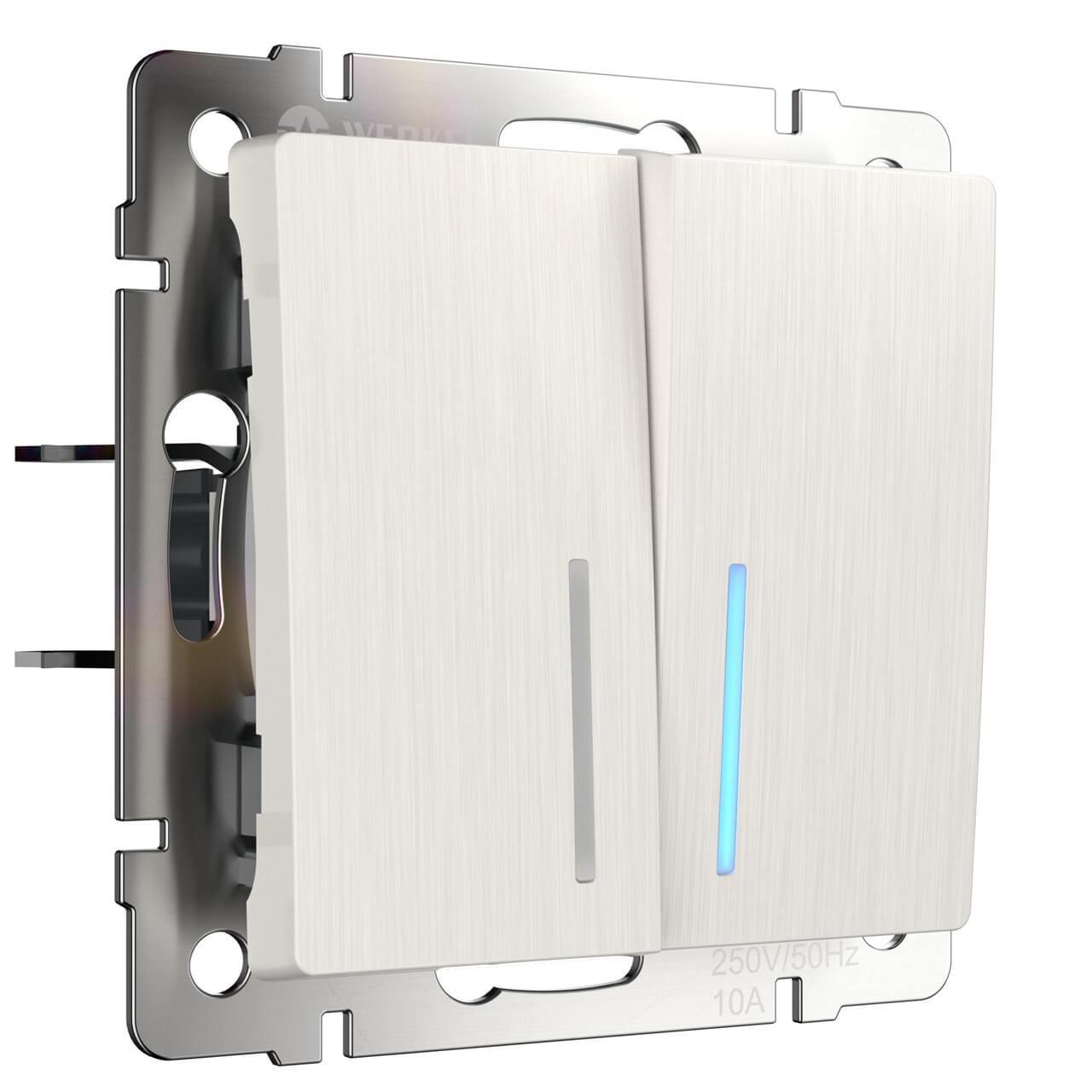 Характеристики Выключатель двухклавишный с подсветкой Werkel перламутровый рифленый W1120113 4690389160905